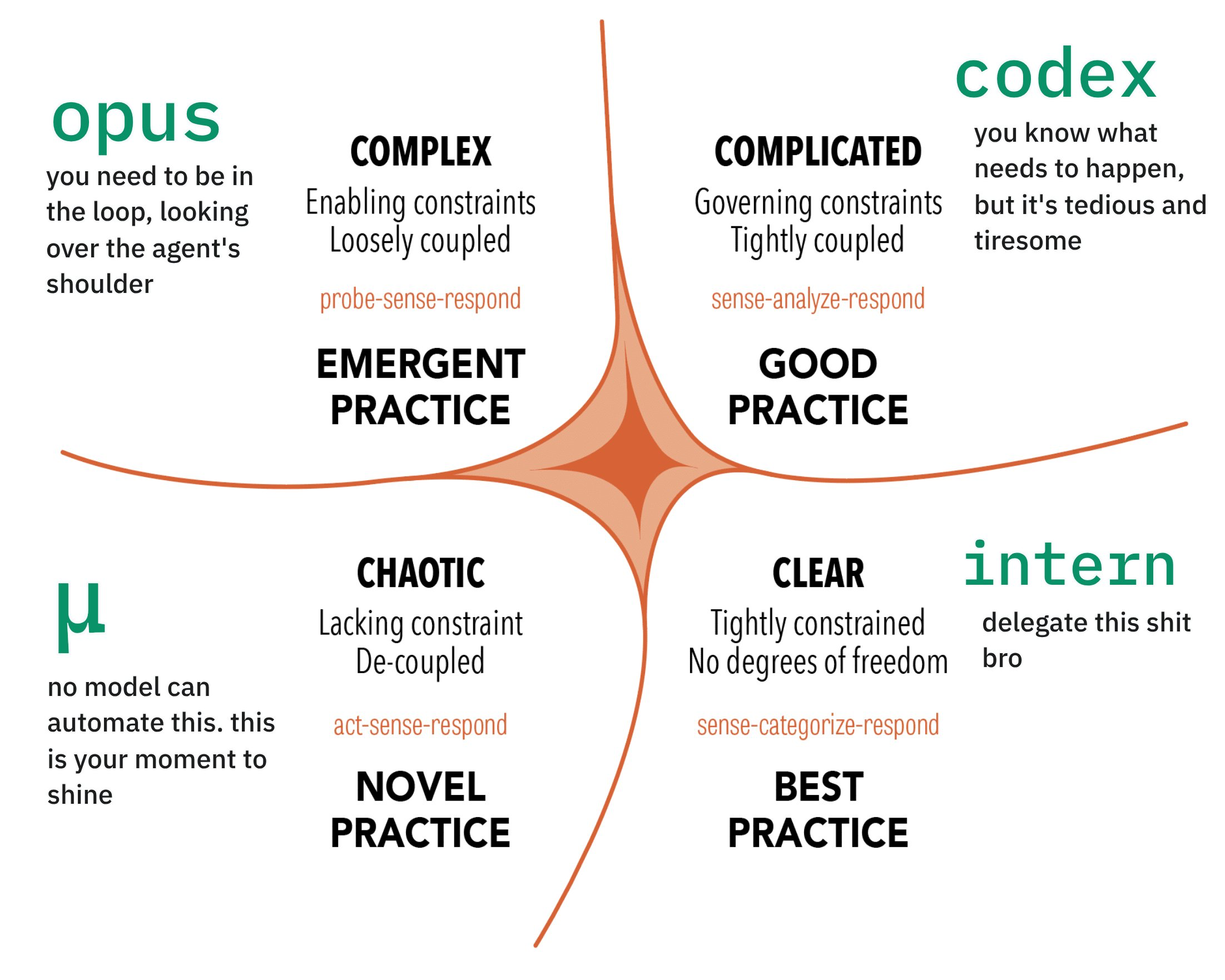 Best model depends on the task at hand 🐘 February 13, 2026 Via X/Vikhyat The diagram uses the Cynefin Framework